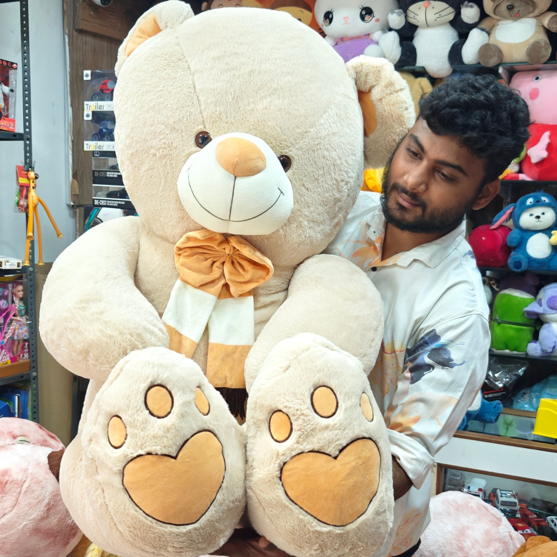 Meet your new cuddle buddy! This giant 5-feet teddy bear is crafted for those who love softness, size, and quality. Stuffed with high-grade polythene fiber, it offers superior softness, long-lasting shape, and a plush feel you’ll fall in love with instantly.