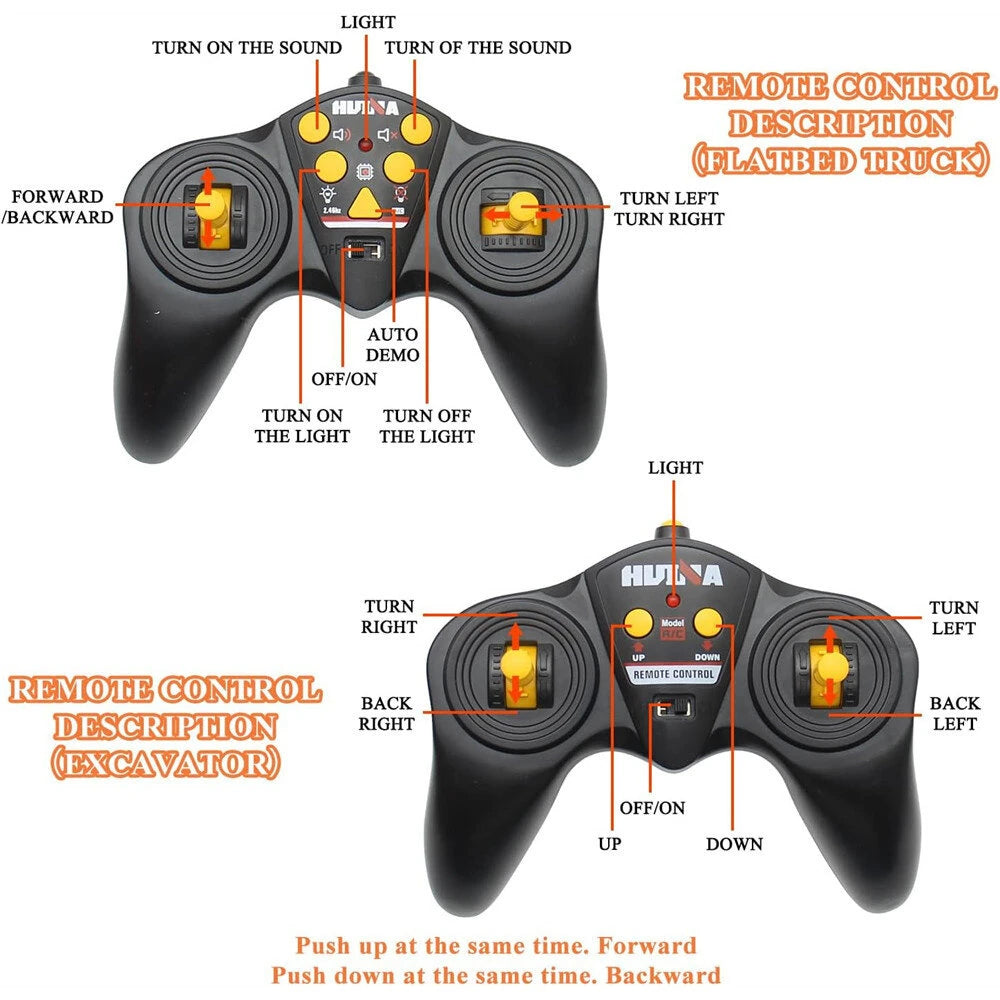 HuiNa 1319 RTR 1/18 2.4G 9CH RC Car Excavator Flat Trailer Flatbed Semi Truck Remote Control Simulation Sound LED Light Engineering Construction Vehicles Models